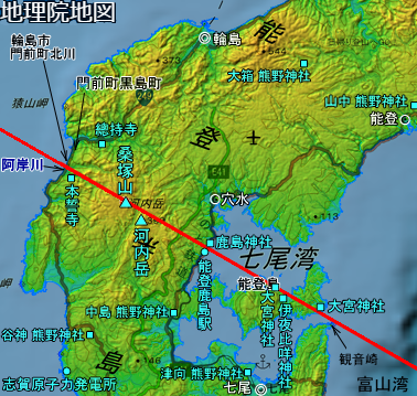 ![]() 氷川神社レイラインは、阿岸川と南側が合流した河口の北側から日本海に出る。 氷川神社本殿から観音崎まで約265㎞、能登島野崎町の野崎 大宮神社まで約267㎞、曲 大宮神社まで約273㎞。 能登鹿島まで281.7㎞、河内岳まで約289㎞、桑塚山まで約292㎞、輪島市門前町北川の海岸まで299.8㎞、ほぼ300㎞だ。 ちなみに輪島市役所まで約293㎞。 千葉県九十九里の片貝海岸から石川県輪島市北川の海岸まで386㎞。 門前町黒島町に福善寺、名願寺、永法寺という3つの違うお寺が並んで建っているのが気になった。 大きな寺ではなさそうだが、3寺とも氷川神社からジャスト300㎞。 門前町黒島町は北前船の船主・船頭の居住地として栄えたところらしい。松尾芭蕉も訪れているようだ。 松尾芭蕉は八咫烏? この氷川神社レイラインの北西端にあたる輪島市門前町は、令和六年(2024)能登半島地震によって大被害を被った地域。4mも隆起した場所もある。 偶然だとは思うが、松代群発地震や善光寺地震とも絡んでいるようにも思える氷川神社レイラインの線上での地震なのが気になる。 レイライン付近は地震の影響が大きい=エネルギーがたくさん放出される場なのか? |