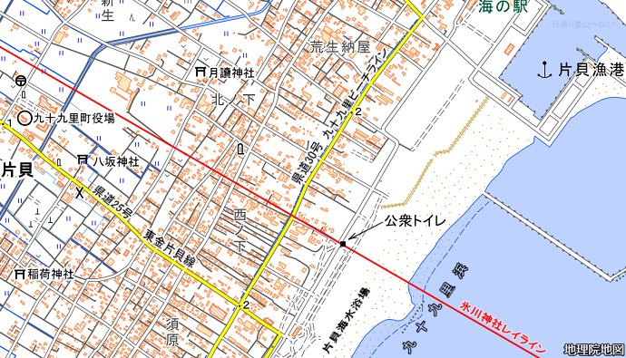 氷川神社レイラインの南東端は九十九里町の片貝海岸