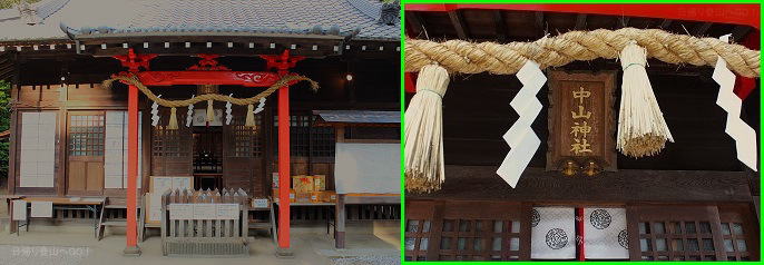 ![]() ⑥中山神社(中氷川神社 または 簸王子社ひおうじしゃ) 拝殿 こちらの扁額には「中山神社」と書かれています。 |