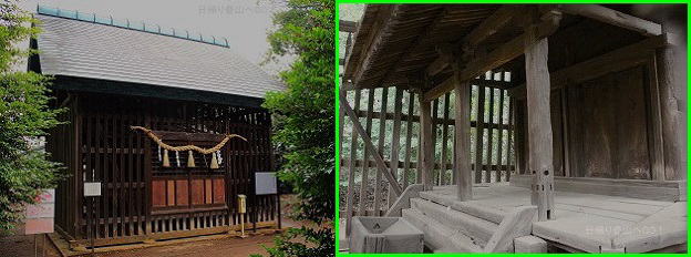 ![]() ⑧さらに本殿の後ろへ回ると旧本殿があります。(格子状の建物の中に保存されている) 旧本殿は二間社流造(にけんしゃながれづくり)という造りで、須佐之男命(すさのおのみこと)と稲田姫命(いなだひめのみこと)の夫婦神を祀る相殿(あいどの)形式をとっている。 建立年は不明(記録が無い)だが、使われている木材を放射性炭素年代測定法で調べると15世紀後半から16世紀前半のものらしい。 埼玉県有形文化財(建造物)に指定されている。 |