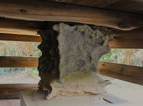 ![]() 社殿の裏側床下に不思議なもの発見! なんだこれ?意味不明。 怪・し・い。 |