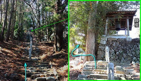 ![]() ⑦そこそこ長い石段(全163段あるらしい)。その奥に鐘楼が見える。 |