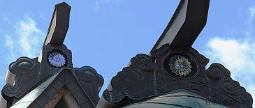 ![]() ⑬屋根には菊の御紋! 屋根はかつて総欅(けやき)こけら葺きでしたが昭和五十四年(1979)に改修されています。 |