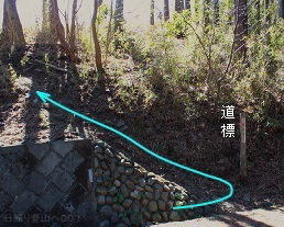 ![]() ⑱社殿の左側から一旦下ります。 (ここから陣見山山頂までの登山道は 児玉郡美里町と本庄市の境界線) |