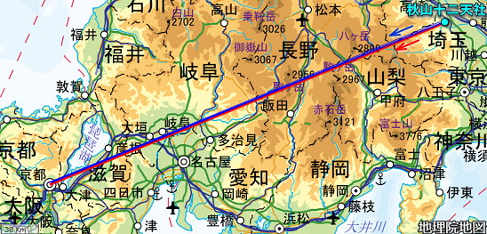 氷川神社レイライン、陣見山の次の山☞御嶽山(麓の金鑚神社は武蔵國二ノ宮)