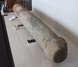玄関入ったところの大きなガラスケース内に横置きで展示保存されていました。展示されているのはこの石棒のみで、なんか寂しい。が、百聞は一見に如かず!
