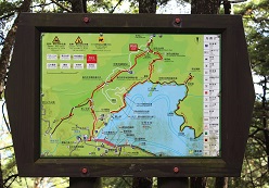 ![]() 道標が立っています。 半月山展望台まで0.6km 半月山まで0.8km (山頂まで約30分) |