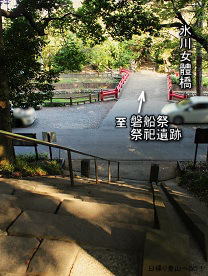 祭祀遺跡から氷川女體橋・石段・鳥居を経て女體神社社殿まで、道はほぼ一直線。