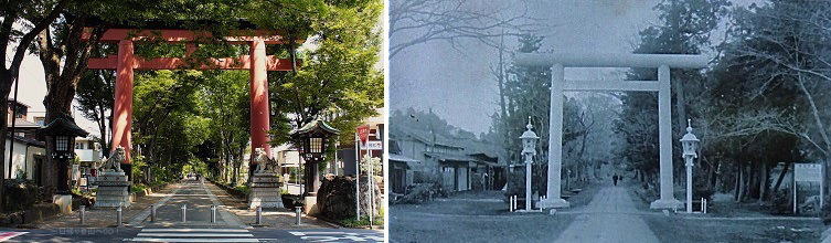![]() ⑤二の鳥居 右側の写真は大正時代の頃の二の鳥居(石鳥居)(参道にあった説明板より) 現在の二の鳥居は、元は明治神宮に建っていた鳥居で、昭和51年(1976)に移築されたもの。台湾・阿里山(アーリーシャン)の樹齢約1200年以上とされる檜でできている。 それまで建っていた上右写真の石造の二の鳥居は、大宮公園口に移築された。(下写真㉛) 氷川神社の狛犬☞ 日帰り登山へGO!埼玉県の狛犬のページ なんと!ニノ鳥居から本殿までの距離、666m! この鳥居の右(東)へ80mほど行ったところにさいたま市立博物館があります。(無料) 👉 さいたま市立博物館(さいたま市公式サイト)【外部リンク】 |