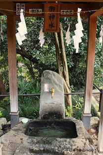 ![]() ㉒御神水 (飲めます) 楼門を出て、 手水の後ろの辺りにあります。 地下水なので夏は冷たく、 冬はほんのりあたたかい。 |