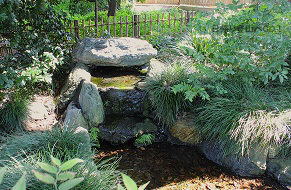 ![]() ㉗蛇の池の近くにも湧水地があり(地下水をポンプで汲み上げた水と思われる)、小さな池を経て蛇の池からの小川と合流し、神池へと流れ込んでいる。 |