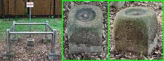![]() ㉝水準点 標高15.1m 昭和五年(1930)に設置された水準点 正面は「一等水準點」、反対側は「基三六号甲」と刻まれている。 (氷川神社の北側、神社の外にあります。大宮公園内。上写真⑧参照) |