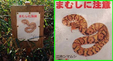 ![]() ⑨「まむし注意」の看板の絵がリアル。 |