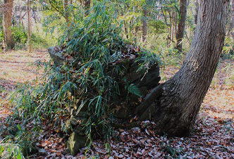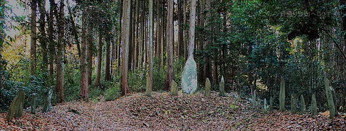 ![]() ⑫百庚申のある広場には、かつて鎮座していた浅間神社の跡、くずれた石組みの遺構がいくつかありました。 |